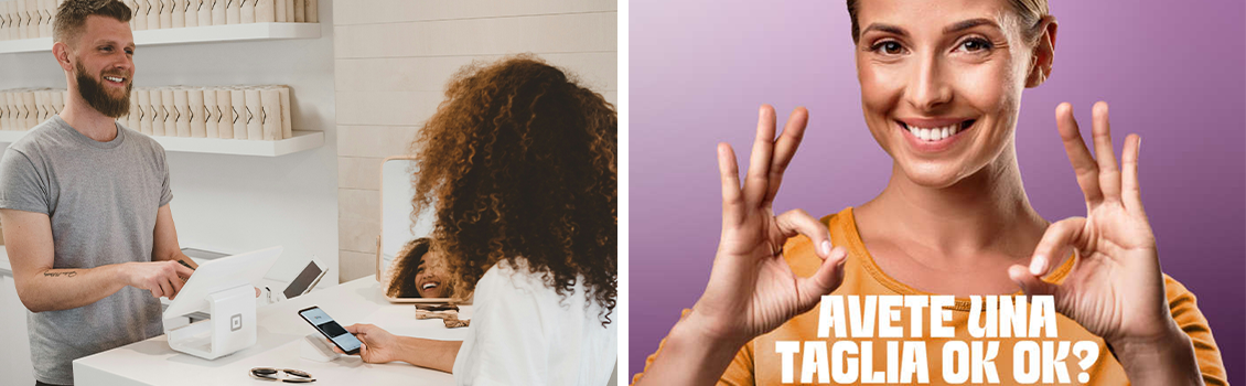 A sinistra foto illustrativa di un pagamento in un negozio
