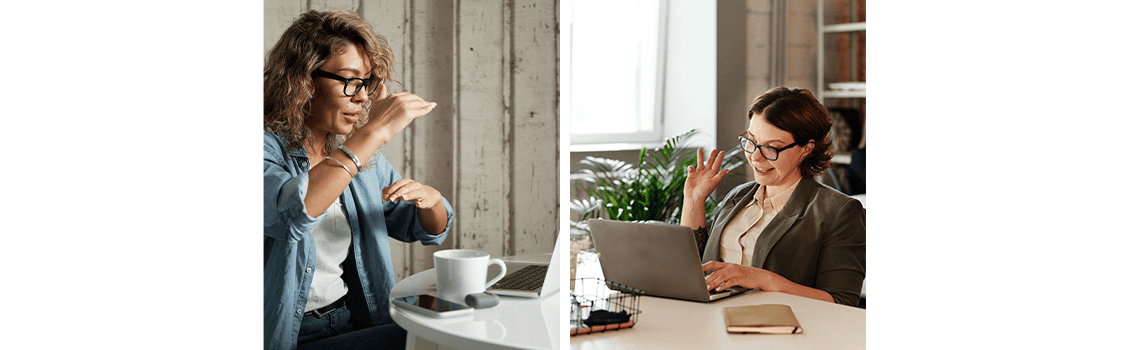 Sia a sinistra sia a destra una donna in videochiamata dal pc