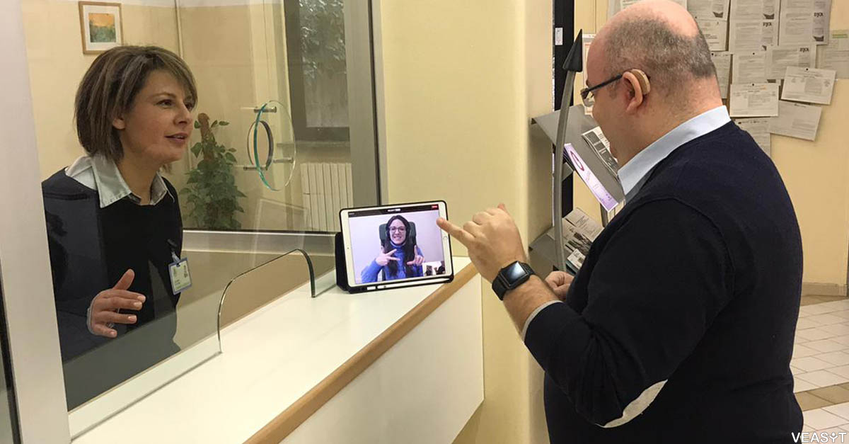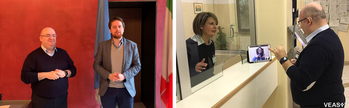 Tutti i giorni, in modalità istantanea, il Sindaco, gli Assessore e tutto il personale amministrativo del Comune infatti avranno a disposizione il servizio di video-interpretariato da remoto in LIS VEASYT Live! per comunicare più facilmente con le persone sorde che si recano presso gli uffici e sportelli comunali.