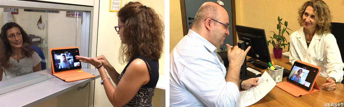 - garantisce piena e completa accessibilità dei contenuti rassicurando il medico della corretta trasmissione di tutti i contenuti verso il paziente sordo e della corretta comprensione perché grazie all’interprete di lingua dei segni il medico ha immediatamente il feedback da parte del paziente.