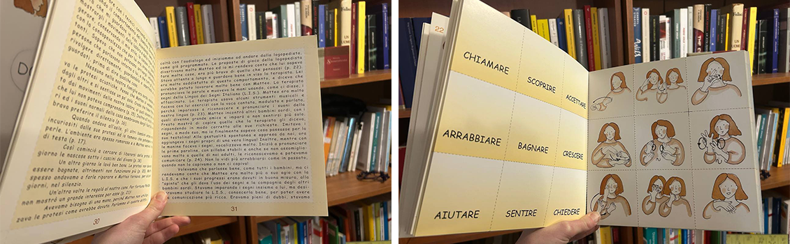 Il libro racconta l’esperienza di vita di un bambino sordo, Matteo, che nasce in una famiglia di persone udenti. La sordità di Matteo viene scoperta a due anni d’età e da quel momento in poi, per lui e per i suoi genitori, inizia un percorso di adattamento, di sfide, di scelte e di trovata serenità.