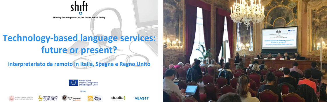 Il progetto “SHIFT in Orality” ha l'obiettivo di studiare, migliorare e promuovere le consolidate o nuove modalità di interpretariato da remoto (telefonico o in video-conference) che permettano a pubbliche amministrazioni ed aziende di rispondere alla crescente richiesta di comunicazione con interlocutori di lingua straniera. In modo semplice, flessibile e professionale, soluzioni da affiancare ai già esistenti servizi di interpretariato e mediazione "in presenza". Partner di progetto sono tra le più interessanti e importanti università e aziende europee che si occupano di interpretariato da remoto: l’Università di Bologna, coordinatore di progetto, l’Università del Surrey, l’Università di Granada, l’Università “Pablo de Olavide” di Siviglia, l’azienda spagnola Dualia SL e l’azienda italiana VEASYT srl.