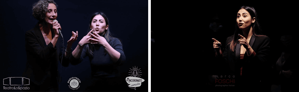 L’adattamento e la preparazione di una pièce teatrale è un lavoro faticoso, ma arricchente e gratificante. Riuscire a trasmettere attraverso la LIS tutto quello che accade sul palco, ad esempio le risate e gli imprevisti, ha davvero un impatto importante per noi interpreti che veicoliamo il messaggio, ma soprattutto per il pubblico sordo e udente che assiste ed interagisce positivamente.