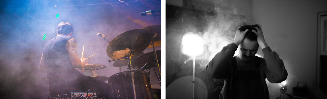 A sinistra un batterista che suona.